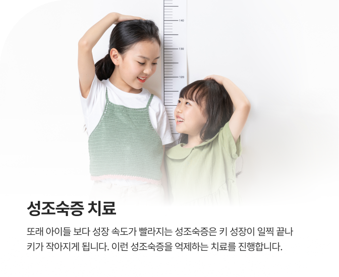 또래 아이들 보다 키가 작은 저신장증을 다양한 프로그램을 통해 예방하여 성장해 나갈 수 있도록 합니다.