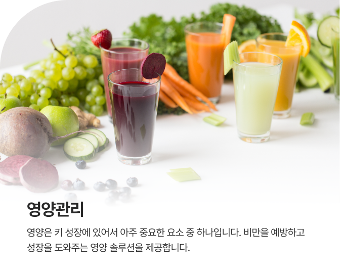 또래 아이들 보다 키가 작은 저신장증을 다양한 프로그램을 통해 예방하여 성장해 나갈 수 있도록 합니다.